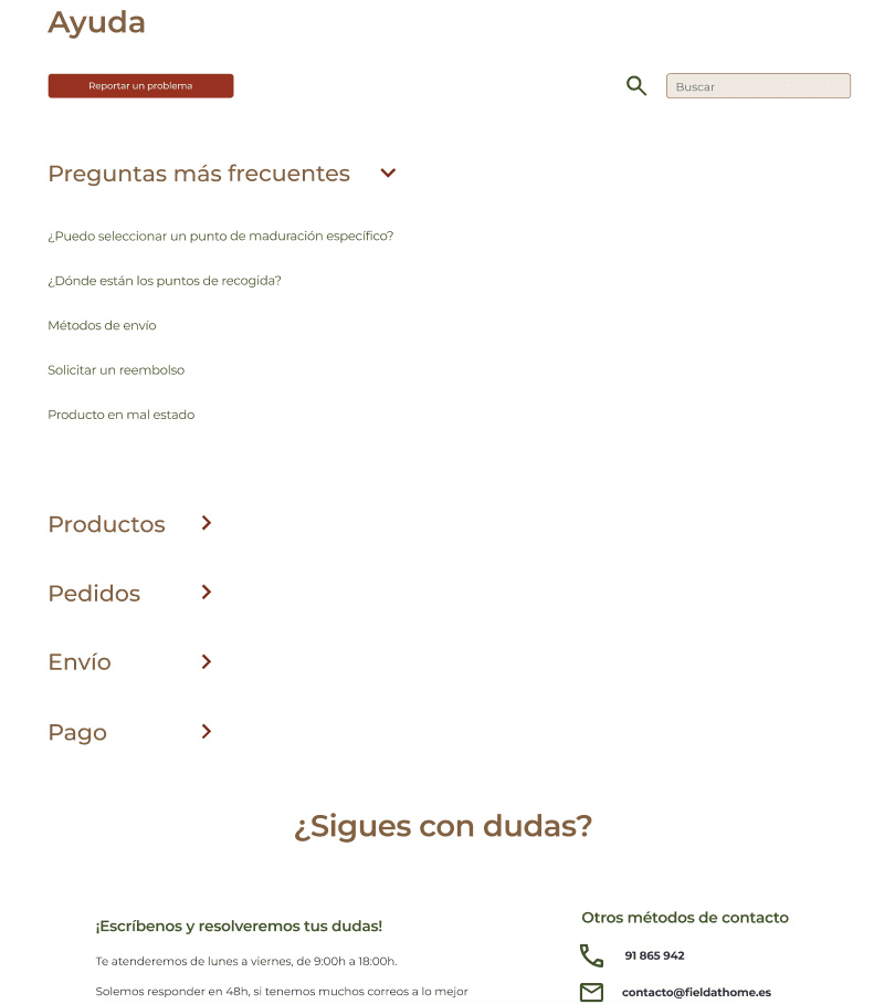 Página de preguntas frecuentes para resolver dudas de primerizos.