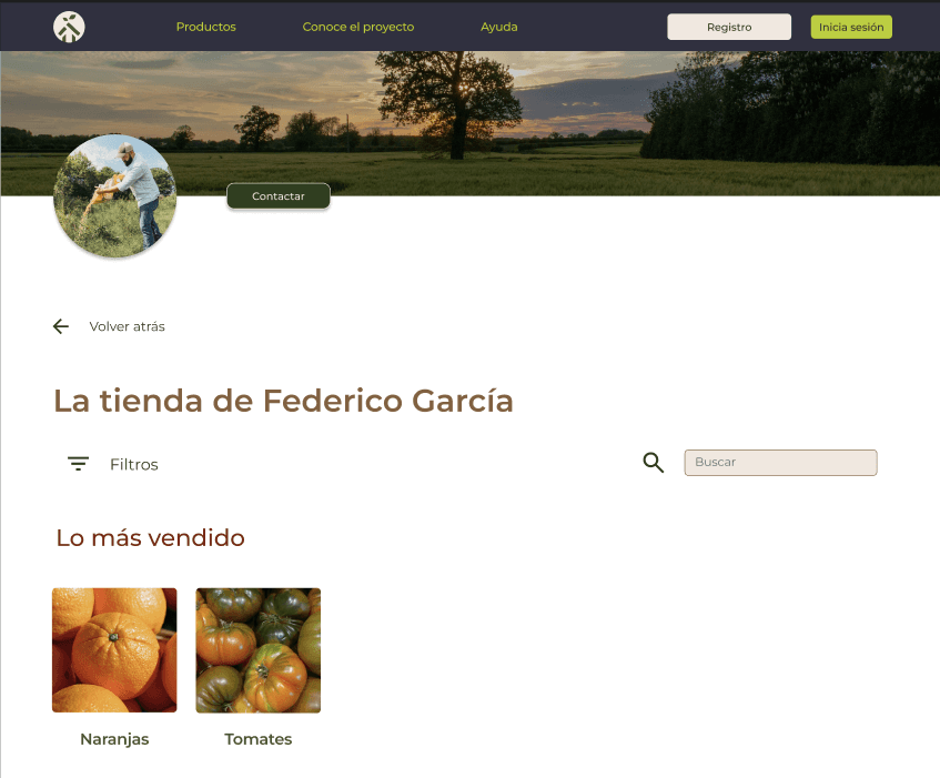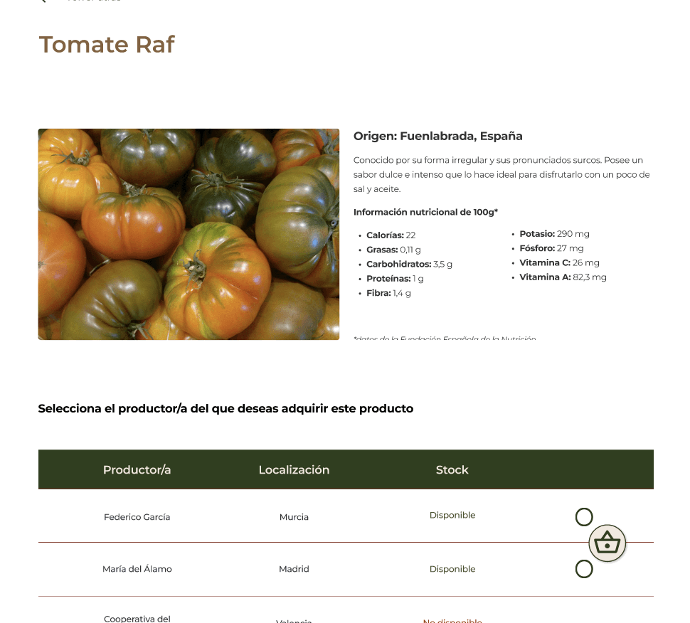 Ficha de producto con foto del agricultor.